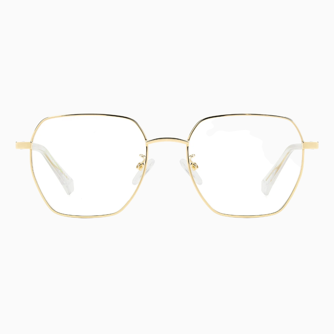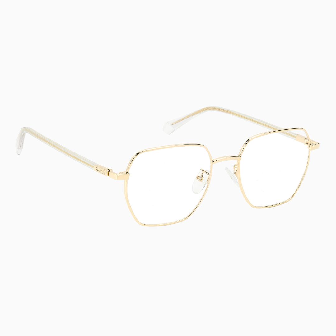 Стильная прямоугольная оправа для очков Polaroid – воплощение премиального качества и современного дизайна. Элегантная модель в золотистом цвете станет идеальным выбором для женщин, ценящих классику с современным уклоном.