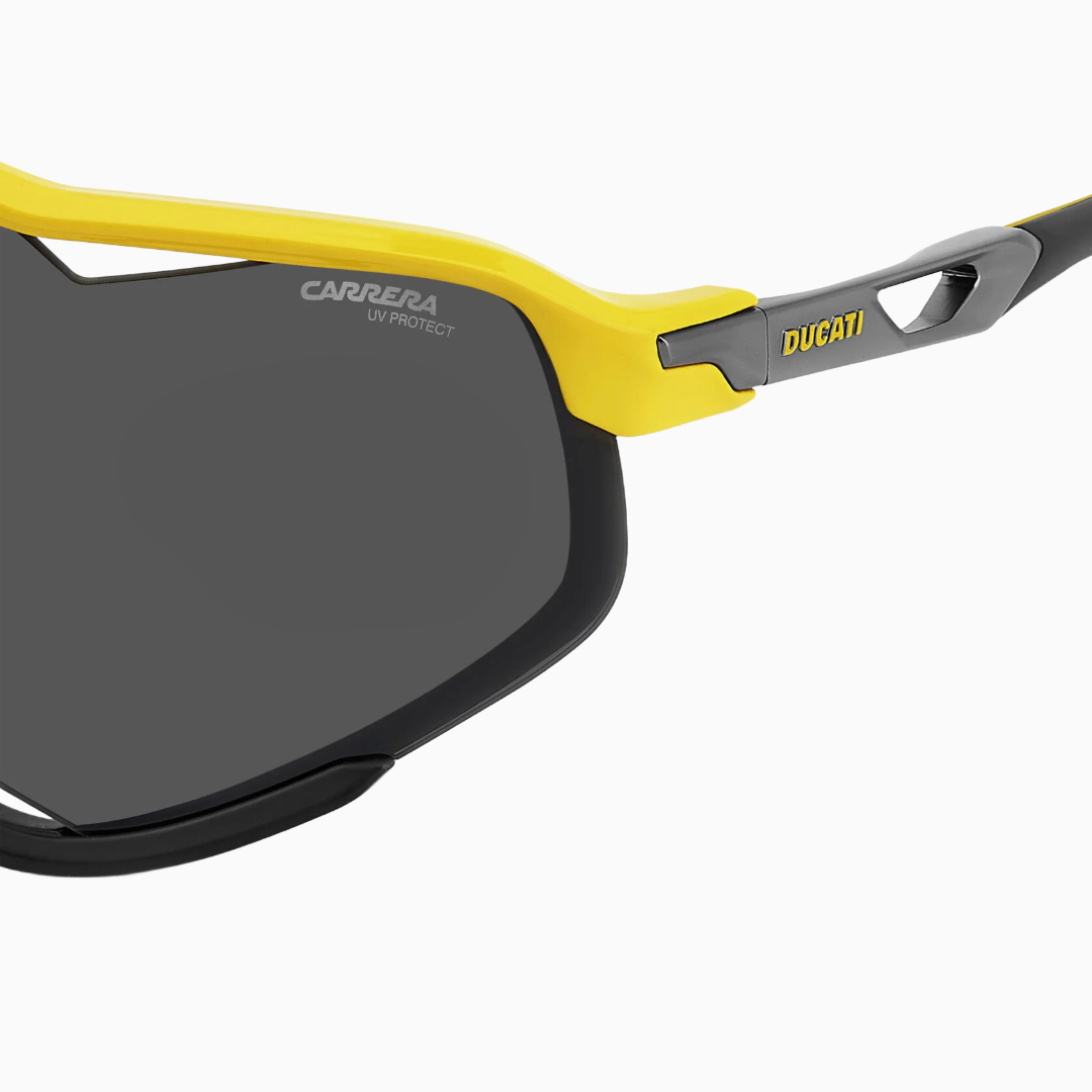 Почувствуйте дух скорости и свободы с солнцезащитными очками CARRERA DUCATI CARDUC 055/S в цвете YELLOW BLACK! Модель создана в рамках коллаборации Carrera и Ducati — для тех, кто ценит спортивный шик и передовые технологии.